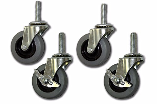 - Product Name: 2-1/2" Caster with 3/8" x 1-1/2" Threaded Stem & TPR Wheel (4 Pack; 2 with Side Brake)